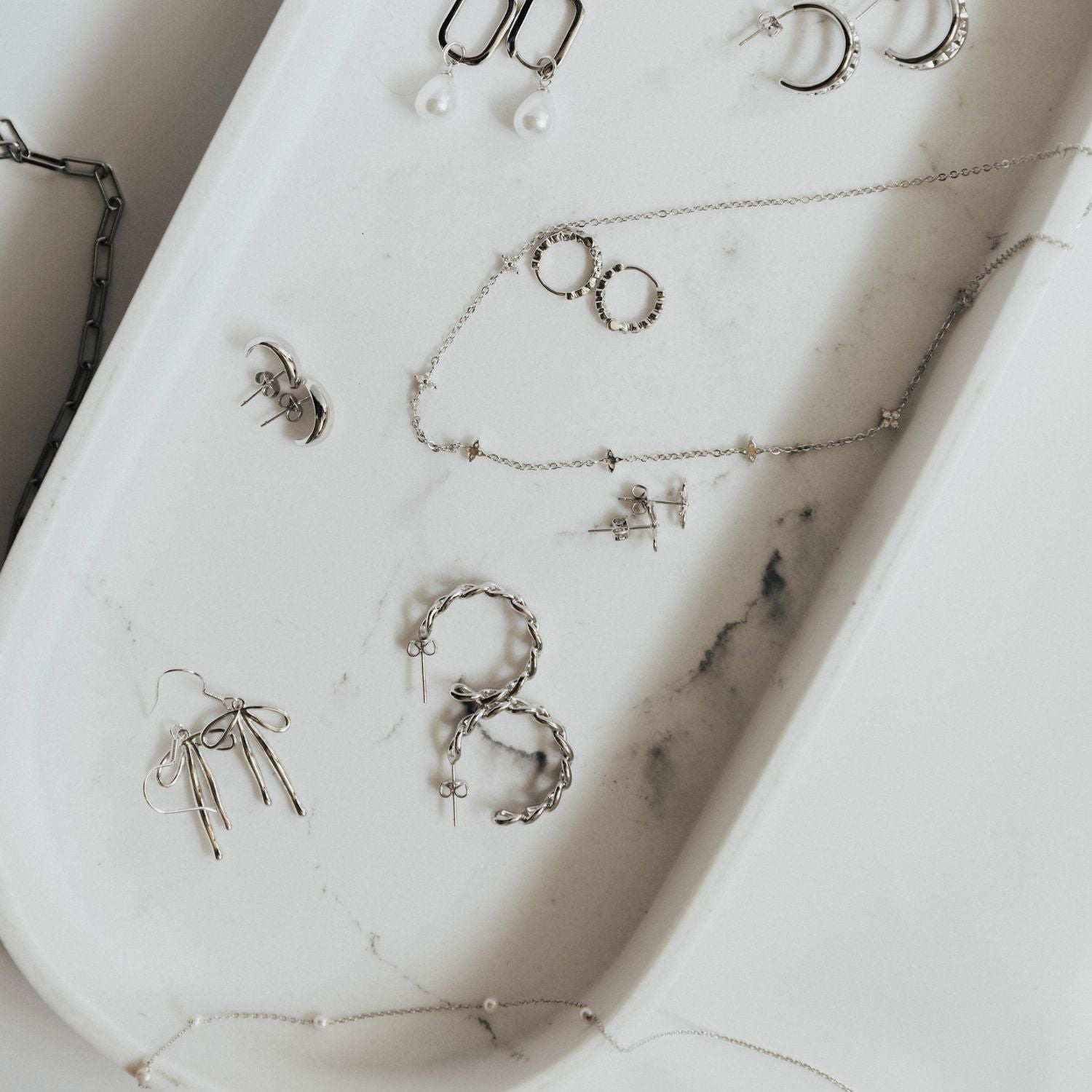 We recommend giving your jewelry occasional breaks from wear, and storing them in a jewelry organizer. Our resealable packaging bags are perfect for traveling with your jewelry. To ensure a long lasting finish on your jewelry, please avoid extended contact with moisture and liquid cosmetics—this includes body oils, lotions, sunscreen, or makeup. We recommend taking your jewelry off before showering, bathing, or swimming.