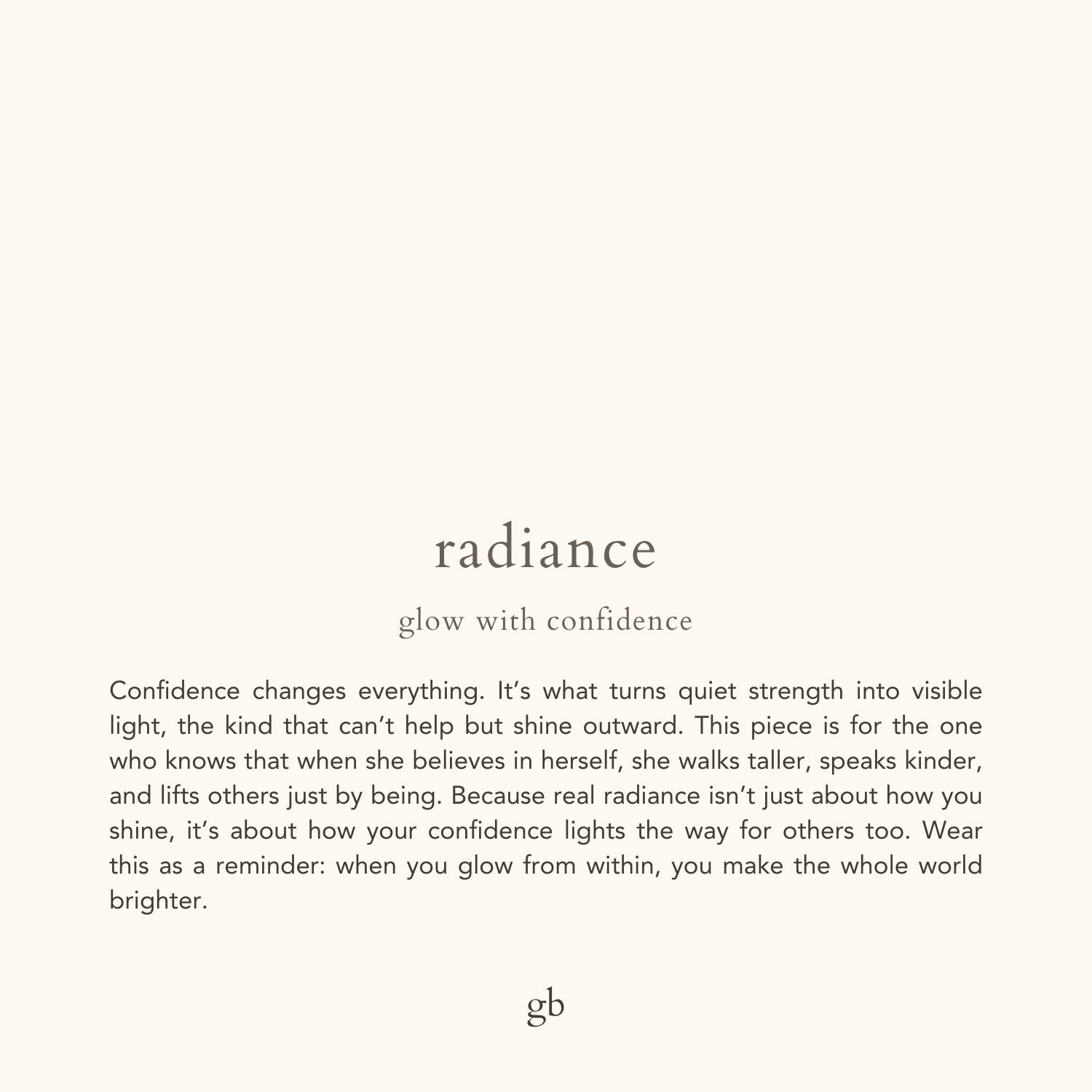 Confidence changes everything. It’s what turns quiet strength into visible light, the kind that can’t help but shine outward. This piece is for the one who knows that when she believes in herself, she walks taller, speaks kinder, and lifts others just by being. Because real radiance isn’t just about how you shine, it’s about how your confidence lights the way for others too. Wear this as a reminder: when you glow from within, you make the whole world brighter.