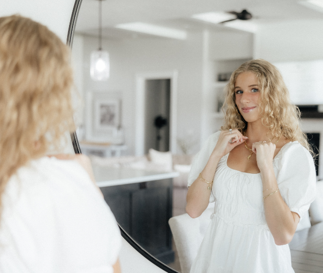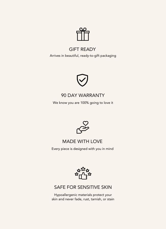 We recommend giving your jewelry occasional breaks from wear, and storing them in a jewelry organizer. Our resealable packaging bags are perfect for traveling with your jewelry. To ensure a long lasting finish on your jewelry, please avoid extended contact with moisture and liquid cosmetics—this includes body oils, lotions, sunscreen, or makeup. We recommend taking your jewelry off before showering, bathing, or swimming.